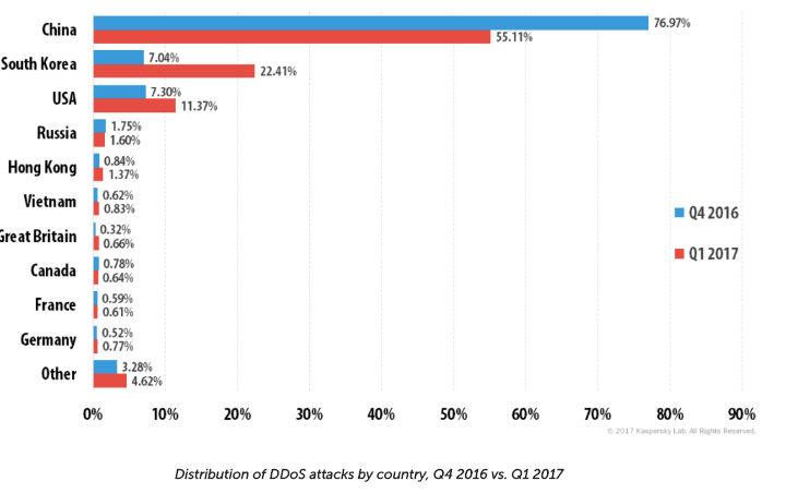 Similar to PC browser attacks, mobile security can be compromised via SMS and MMS. Hackers can use SMS and MMS to get control of a mobile device to access data, or to issue a Distributed Denial of Service (DDoS) attack.Leading the way in distribution of DDoS attacks is China, but they have seen a decline in attacks in the past year. The United States ranks as the third most susceptible country to DDoS attacks, with a four percent increase in the last year.