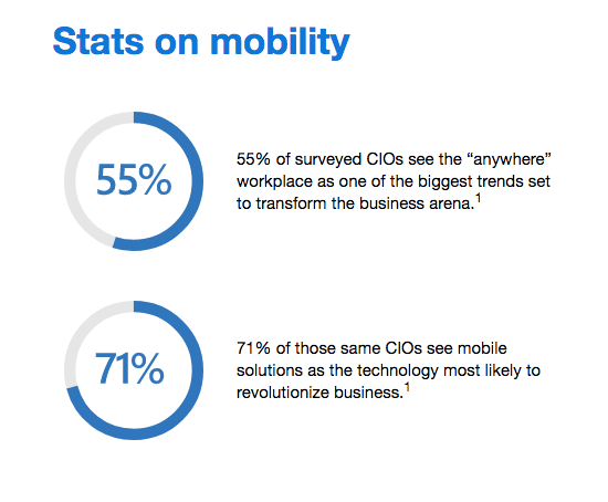 Having a mobile workforce can benefit almost any business. Smartphones provide your employees access to company workflow 24/7. Company mobile devices and Bring Your Own Device (BYOD) smartphones can increase productivity and efficiency.In fact, 71 percent of CIOs see company mobile devices as a way to revolutionize their companies. And 55 percent of CIOs see it as one of the biggest business trends.