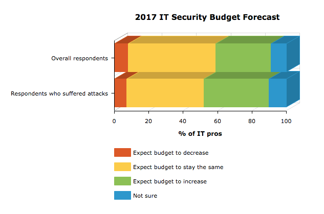 Last year, increased IT security was highlighted in company expenditures. 38 percent of companies that experienced a cyber attack increased IT security budgets.