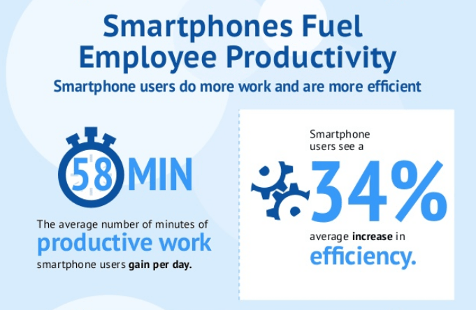 One of the main reasons we see an increase in productivity and efficiency is the ease of accessibility to business and productivity apps. People use apps to streamline their personal lives, and that brings an innate ability for apps to also play a big role in business.In fact, 77 percent of work smartphones support business and productivity apps.